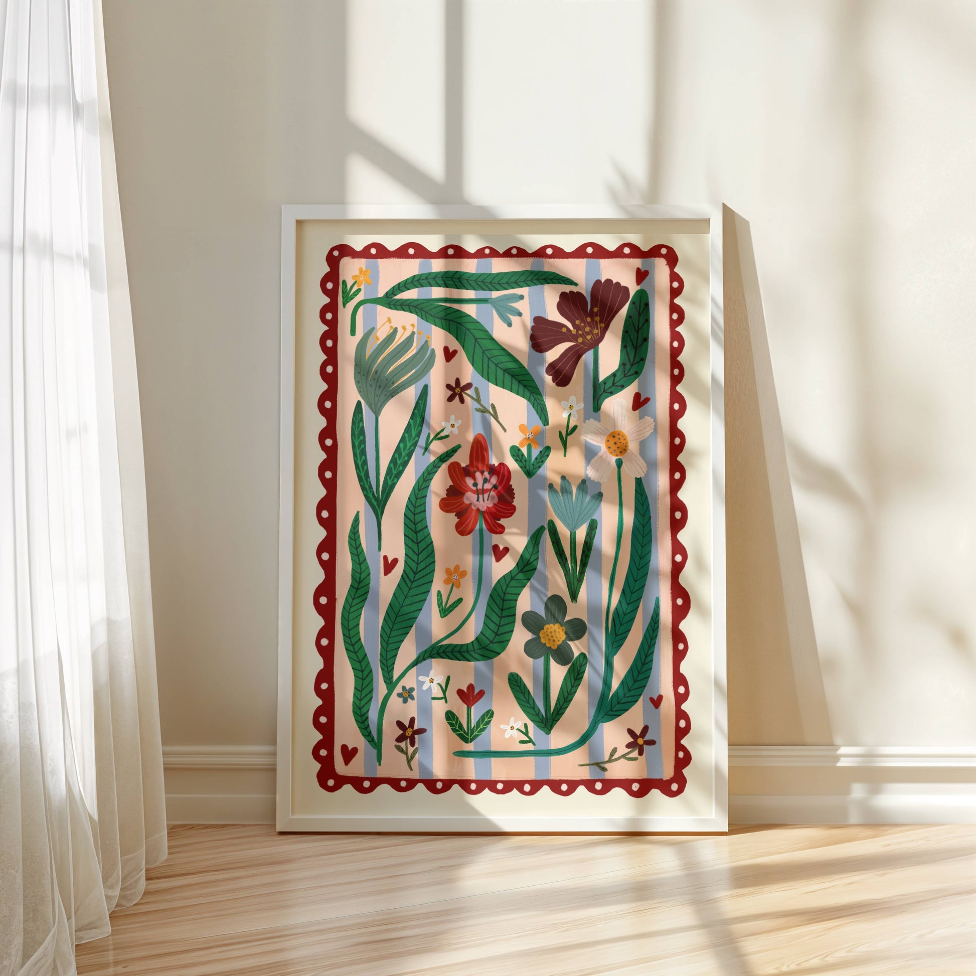 Bring a touch of playful, bohemian charm to your walls with this Boho Flower Striped Hand-Drawn Art Print. Featuring delicate floral illustrations set against whimsical stripes, it’s perfect for adding a colourful, hand-crafted feel to bedrooms, living spaces, or gallery walls.
