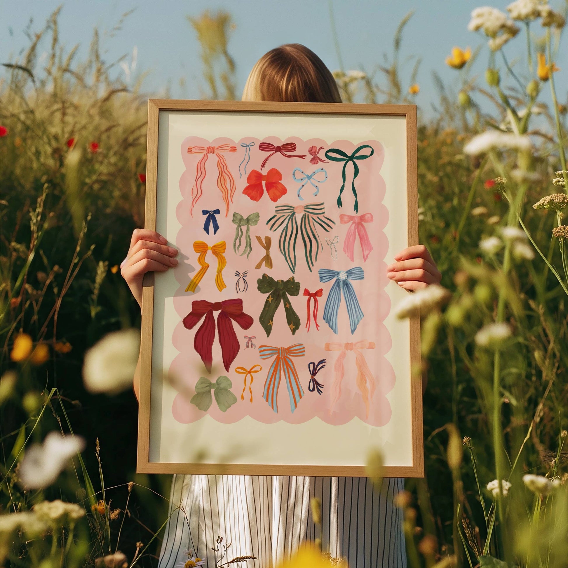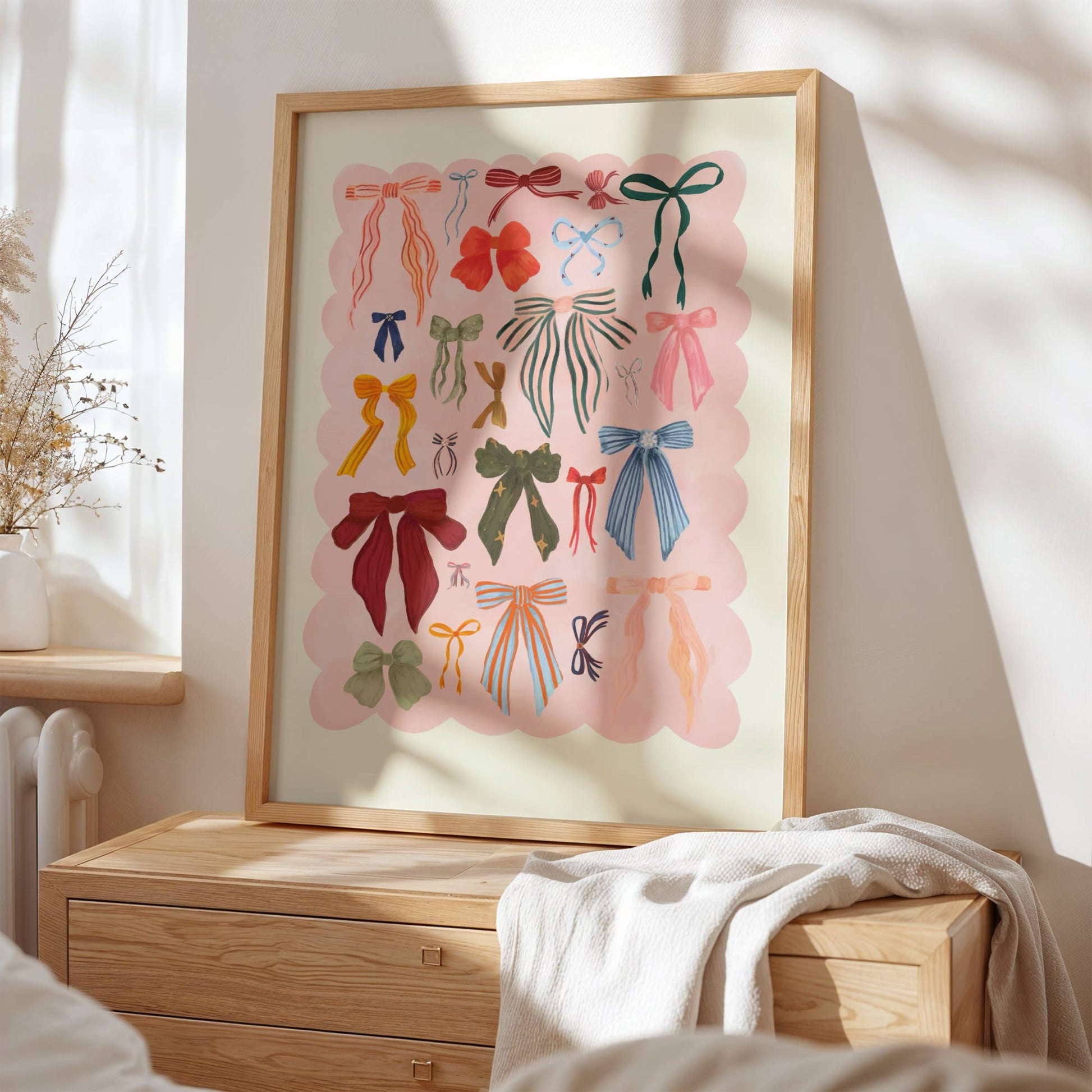 Colourful Bows Hand-Drawn Art Print | Pretty Wall art