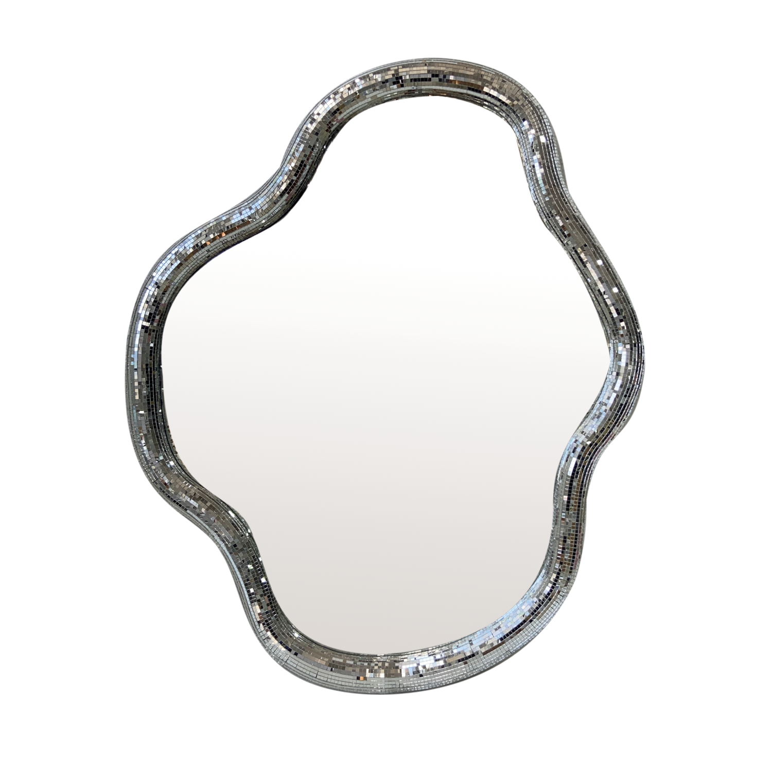 Bring instant sparkle to your walls with this Disco Mirror in an organic freeform shape. Its playful curves and faceted edge design catch and scatter the light, creating a striking statement that feels both contemporary and retro-glam.