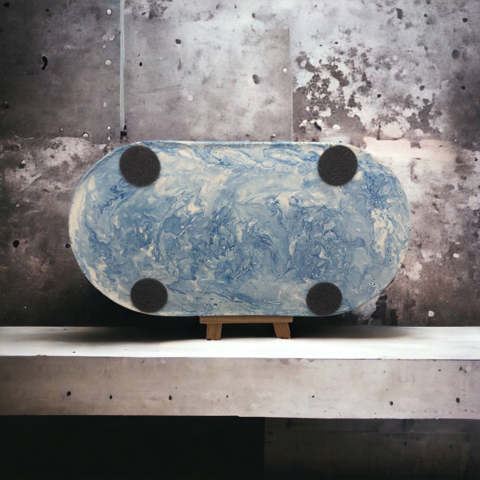 Blue Marble Oval Jesmonite Tray | Handmade Home Decor
