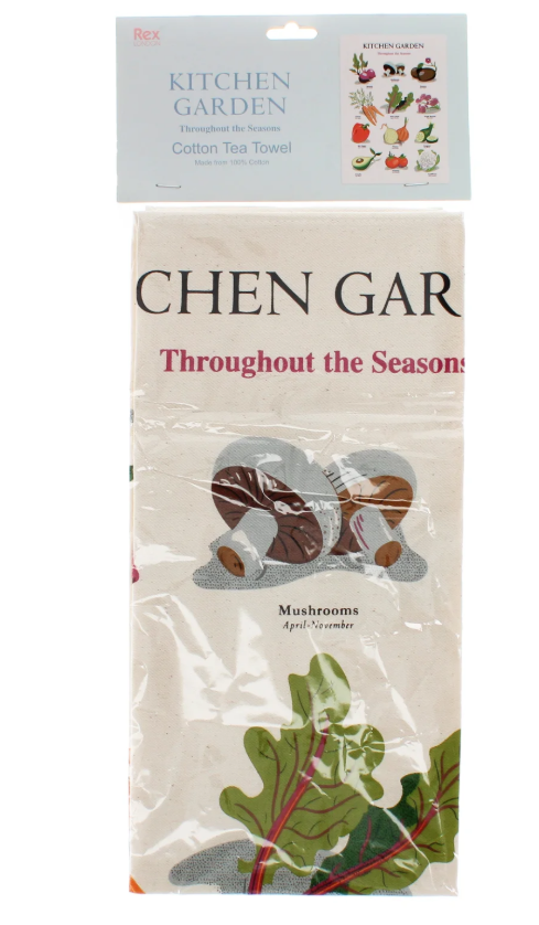 - 100% cotton tea towel with illustrated kitchen garden ingredients