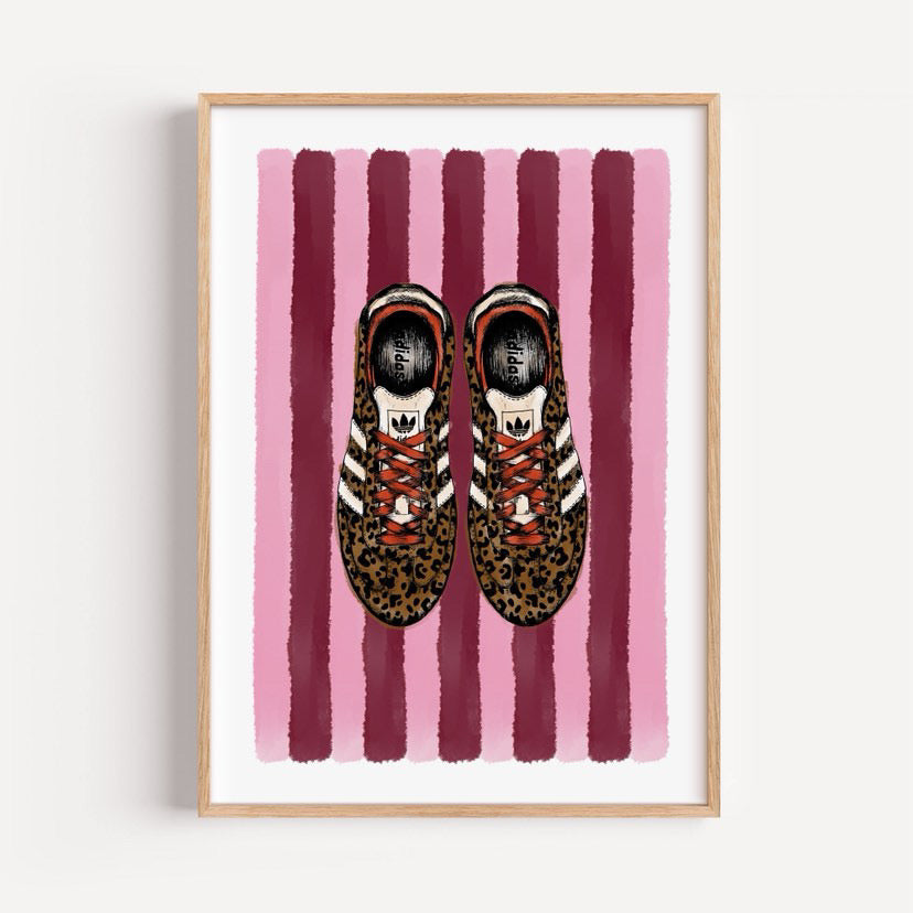 Leopard Samba Stripe Print | Trainer Illustration Art with Pink & Burgundy Stripe Background