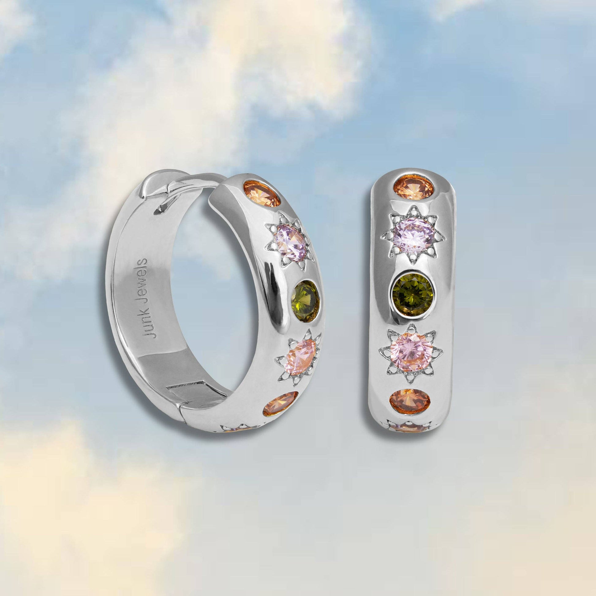 Pastel Stone Chunky Hoop Earrings | Gold-Plated Jewellery